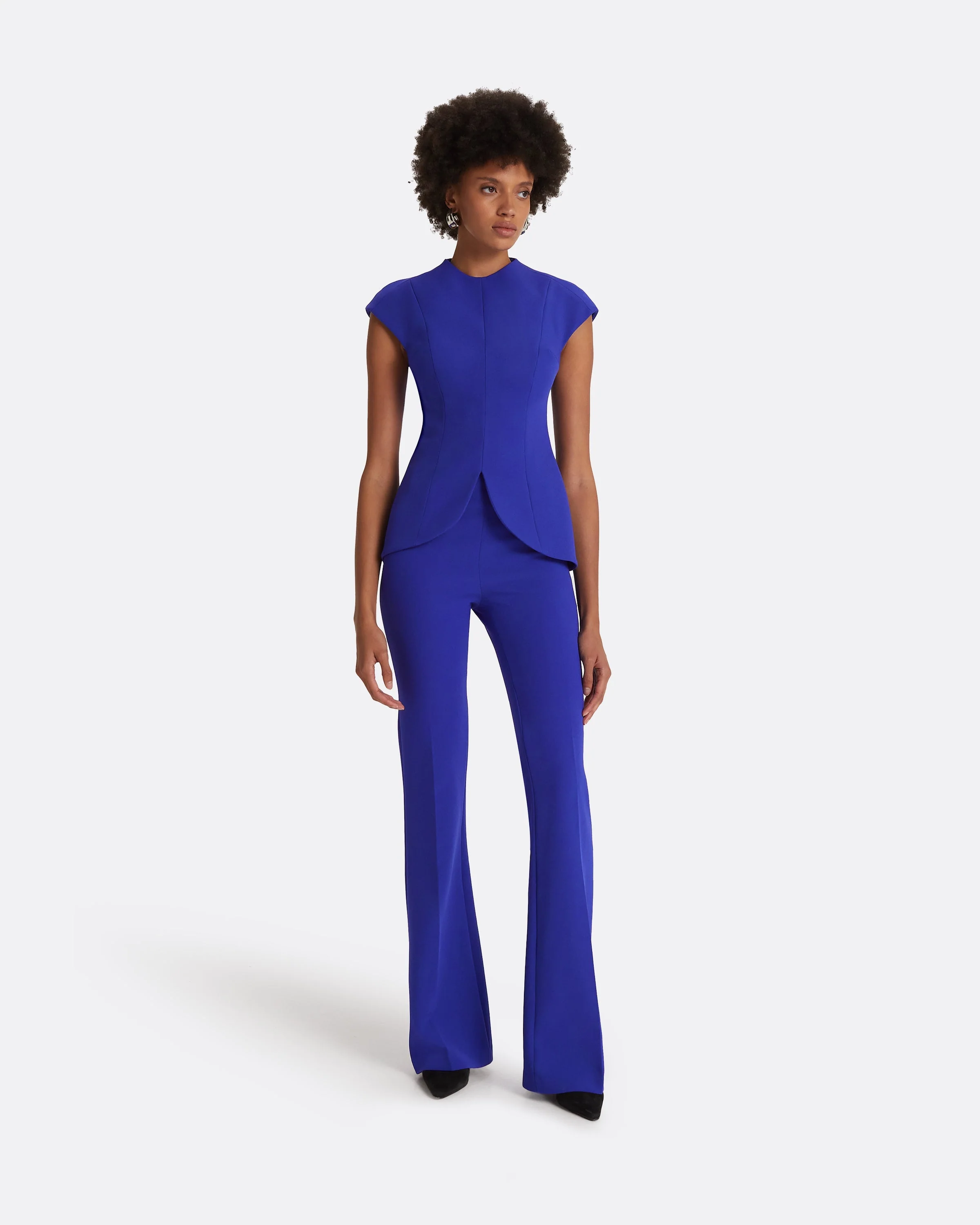 A Safiyaa Icon, the Alexa trousers in azure blue are tailored with clarity and ease. Their clean lines and subtly defined silhouette bring a composed energy to modern dressing.