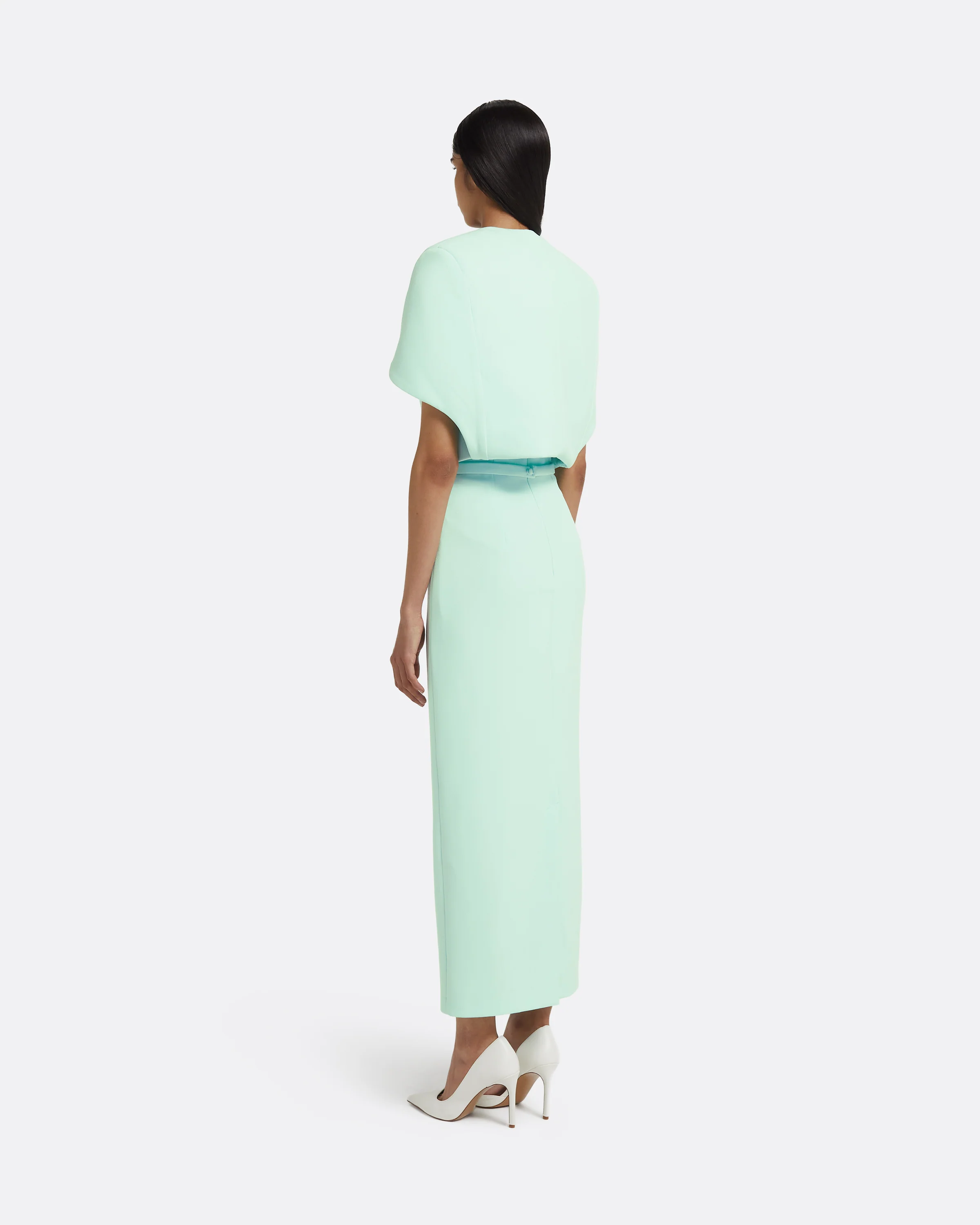 From the Resort ’26 collection, the Micah cape offers sculptural simplicity with a sense of occasion. Its clean, architectural line is softened by a tonal floral appliqué, placed to highlight the shoulder. Designed to layer, it completes any look with considered volume.